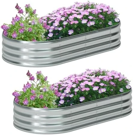 zizin 2 Pack Galvanized Raised Garden Bed Metal Oval Raised Garden Beds Outdoor